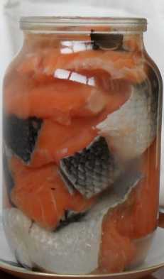 - Отставляем раствор остужаться, а рыбу помещаем в небольшие баночки.