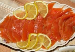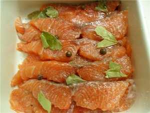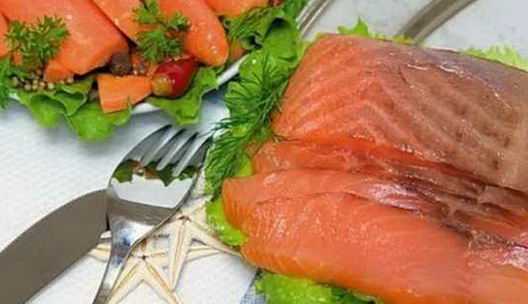 - Ставим горбушу в прохладное место, а уже через три часа просаливания ее можно подавать к столу.