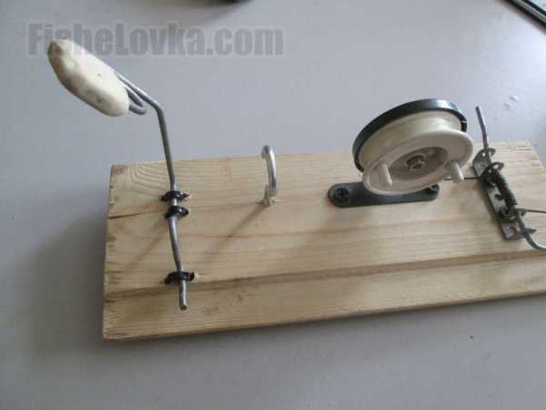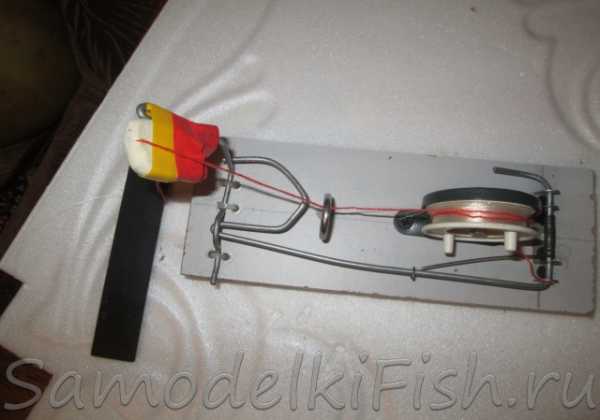 Самым простым устройством из этой категории считается самоподсекатель, срабатывающий по принципу мышеловки. Монтируется на обычном куске фанеры или доски, который служит основанием для крепления механизма. Сделать его своими руками совсем несложно, если есть желание и необходимые материалы. Для этого нужно следующее: