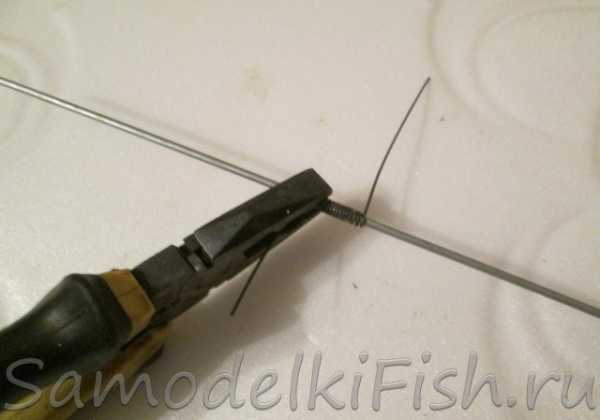 На толстую проволоку наматывается тонкая при помощи плоскогубцев, делая виток за витком. Необходимо сделать от 10 до 15 витков (чтобы пружина вместилась между двумя скобами).