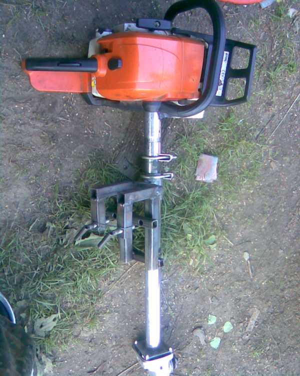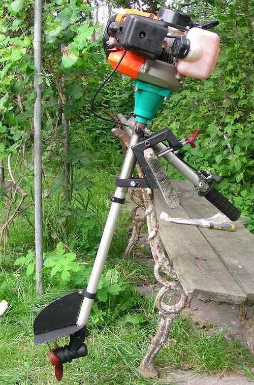 Принципно в роли лодочного мотора может выступать хоть какой привод. Плохо заводится мотор газонокосилки. Но бензокоса, кроме достаточно экономного мотора, обладает и другими плюсами: