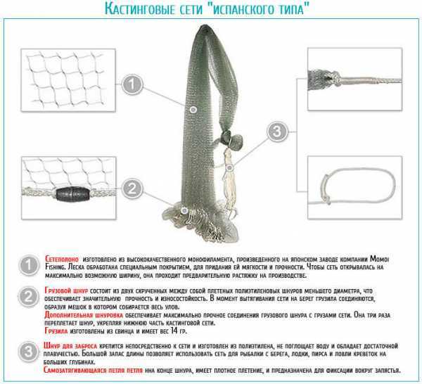 Основные отличия конструкции кастинговой сети испанки от ее американского собрата такие: