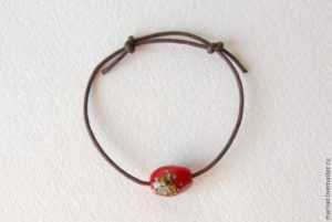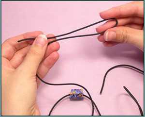 | Берется необходимый отрезок шнура. Надевается нужное украшение. Конец складывается петлей. | ![]() |