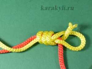 Еще один вариант простого узла. Его вязание вообще не вызывает никаких сложностей, единственное, что под рукой должна быть иголка (лучше цыганская).