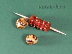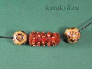 Убираем зубочистку из бусины и в образовавшееся отверстие продеваем шнур.