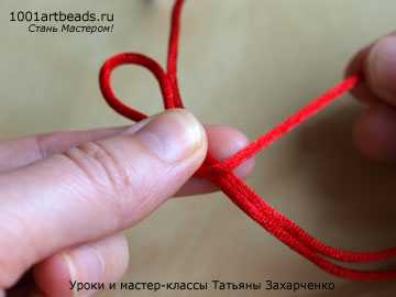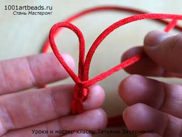 Чтобы завязать такой узел, потребуется немного терпения и капелька усидчивости. Во-первых, приготовьте хлопковый шнурок не слишком толстый, длиной не более 90 см. Наденьте на него бусины в нужном порядке, сплетите браслет. А теперь – внимание, завязываем узел! Возьмите кончики шнура рукой, так, чтоб с каждой из сторон оставался запас в 14 сантиметров, направьте их друг к дружке навстречу.