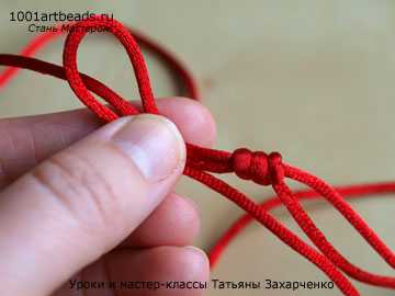 Я для наглядности завязывала узлы близко друг к другу. Вы же можете завязывать их в любом месте шнура, главное, чтобы хвостик, который потом останется лишним, не был очень длинным.
