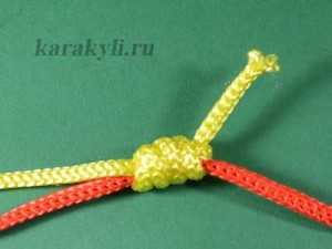 В украшениях цвет шнура бывает, конечно, одного цвета, но для удобства мы покажем, как завязывать скользящий узел, использую разные шнуры.