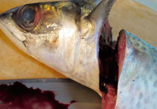 - Скумбрия, берем свежемороженую, размораживаем, извлекаем из неё жабры, промываем под проточной водой