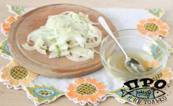 - Мелко нарезаем луковицу и обсыпаем кусочки