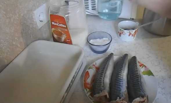 Пока готовится рассол, необходимо подготовить рыбу. Её нужно очистить от внутренностей и чёрной плёночки, находящейся внутри тушки, которая может давать неприятную горечь. После рыба промывается под проточной водой и просушивается на бумаге (можно убрать лишнюю влагу бумажными салфетками).