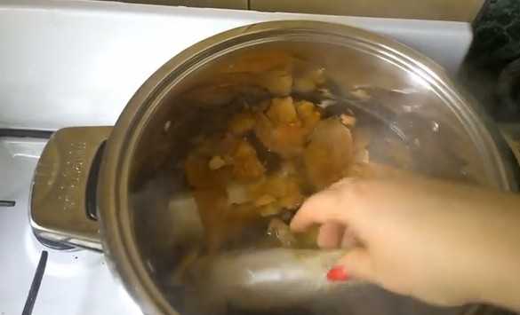 - Заливаем в кастрюлю воду, замачиваем в ней на несколько минут шелуху