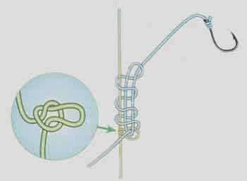 В местах, чреватых зацепами, приходится использовать поводок длиной не более 5 см из более тонкой лески. Для монтажа я использую скользящий узел, при котором на соединении теряется только 20 % от разрывной прочности лески поводка, поскольку крепление “петля в петлю” менее надежное.