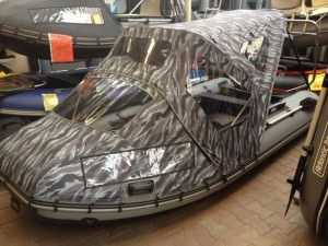 У большинства производителей он встречается в двух видах: целиком выполненный из тонкой ПВХ ткани и с прозрачным окном в передней части. Тент быстро устанавливается на П-образную дугу и растягивается вдоль бортового привала на крючках. Он очень хорошо защищает экипаж от брызг, а лодку от заливания через нос крутой волной.