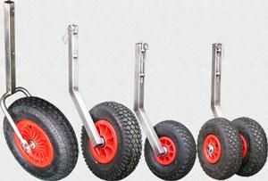 Без этого атрибута сейчас не обходится ни один уважающий себя владелец лодки! Учитывая, что магазинные цены на шасси «кусаются», умельцы изготавливают их самостоятельно. Ведь зачастую к воде автомобилем не подъедешь, а транспортировать тяжёлую лодку до водоёма как-то нужно. В таких случаях на помощь приходят колёса.Для небольших лодок подходит одноколёсная модель. Большие требуют парных колёс для обеспечения максимально комфортного перемещения плавсредства.