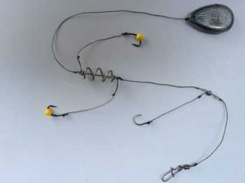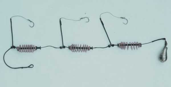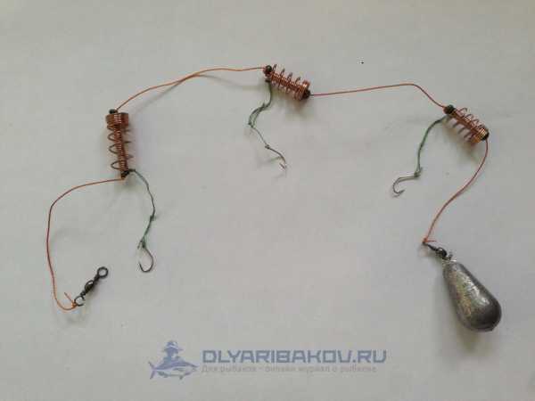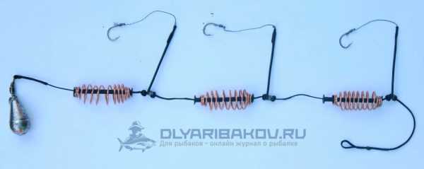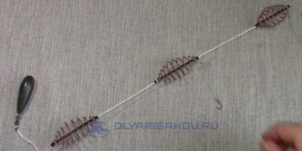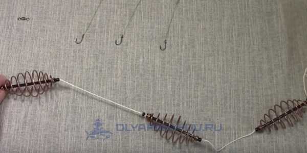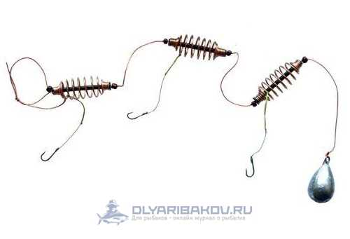 ΠΎΠ΄ΠΈΡΡΡ Π½Π° ΡΠ²ΠΎΠ΅ΠΌ ΠΌΠ΅ΡΡΠ΅. Π§ΡΠΎΠ±Ρ Π²ΠΎ Π²ΡΠ΅ΠΌΡ Π·Π°Π±ΡΠΎΡΠ° ΠΎΠ½ΠΈ Π½Π΅ ΠΏΡΡΠ°Π»ΠΈΡΡ ΠΌΠ΅ΠΆΠ΄Ρ ΡΠΎΠ±ΠΎΠΉ, Π½Π° ΠΊΠΎΠ½ΡΠ΅ Π»Π΅ΡΠΊΠΈ ΡΡΡΠ°Π½Π°Π²Π»ΠΈΠ²Π°Π΅ΡΡΡ Π³ΡΡΠ·ΠΈΠ»ΠΎ. ΠΡΡΠ· ΠΎΠ±ΡΠ·Π°ΡΠ΅Π»ΡΠ½ΠΎ Π΄ΠΎΠ»ΠΆΠ΅Π½ Π±ΡΡΡ ΡΡΠΆΠ΅Π»Π΅Π΅ ΠΊΠΎΡΠΌΡΡΠ΅ΠΊ. Π ΠΏΠΎΠ»Π΅ΡΠ΅ ΠΎΠ½ ΡΠ°ΡΡΡΠ³ΠΈΠ²Π°Π΅Ρ Π³ΠΈΡΠ»ΡΠ½Π΄Ρ, Π½Π΅ ΠΏΠΎΠ·Π²ΠΎΠ»ΡΡ ΠΏΡΡΠΆΠΈΠ½ΠΊΠ°ΠΌ Π·Π°ΡΠ΅ΠΏΠΈΡΡΡΡ ΠΎΠ΄Π½Π° Π·Π° Π΄ΡΡΠ³ΡΡ. Π‘ ΠΏΡΠΎΡΠΈΠ²ΠΎΠΏΠΎΠ»ΠΎΠΆΠ½ΠΎΠΉ ΡΡΠΎΡΠΎΠ½Ρ ΠΊΠΎΠ½ΡΡΡΡΠΊΡΠΈΠΈ ΠΏΡΠΈΠ²ΡΠ·ΡΠ²Π°Π΅ΡΡΡ ΠΊΠ°ΡΠ°Π±ΠΈΠ½ΡΠΈΠΊ Π΄Π»Ρ ΡΠΎΠ΅Π΄ΠΈΠ½Π΅Π½ΠΈΡ Ρ ΠΎΡΠ½ΠΎΠ²Π½ΠΎΠΉ Π»Π΅ΡΠΊΠΎΠΉ. ΠΠ° ΠΊΠ°ΠΆΠ΄ΠΎΠΉ ΠΊΠΎΡΠΌΡΡΠΊΠ΅ ΡΡΡΠ°Π½Π°Π²Π»ΠΈΠ²Π°Π΅ΡΡΡ ΠΊΠΎΡΠΎΡΠΊΠΈΠΉ ΠΏΠΎΠ²ΠΎΠ΄ΠΎΠΊ Ρ ΠΊΡΡΡΠΊΠΎΠΌ. ΠΠ°ΠΊ ΠΏΡΠ°Π²ΠΈΠ»ΠΎ, Π΄Π»ΠΈΠ½Π° ΠΏΠΎΠ²ΠΎΠ΄ΠΊΠΎΠ² Π½Π΅ ΠΏΡΠ΅Π²ΡΡΠ°Π΅Ρ 4 ΡΠΌ, Ρ Π±ΠΎΠ»Π΅Π΅ Π΄Π»ΠΈΠ½Π½ΡΠΌΠΈ ΡΡΠ±Π° Π±ΡΠ΄Π΅Ρ Ρ