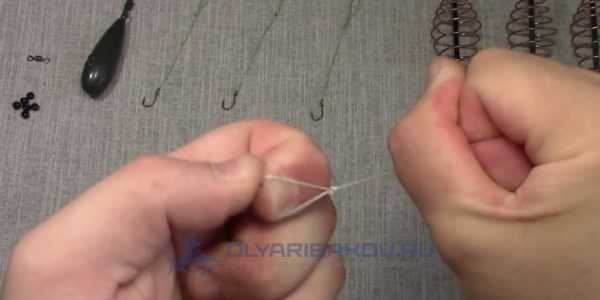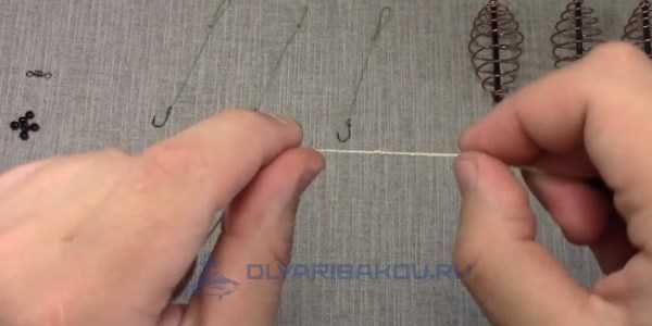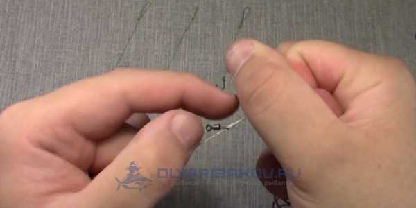 ΠΠ° ΠΎΡΡΠ°Π²ΡΠ΅ΠΌΡΡ ΡΠ²ΠΎΠ±ΠΎΠ΄Π½ΠΎΠΌ ΠΊΠΎΠ½ΡΠ΅ Π»Π΅ΡΠΊΠΈ Π²ΡΠΆΠ΅ΡΡΡ Π²Π΅ΡΡΠ»ΡΠΆΠΎΠΊ Ρ ΠΊΠ°ΡΠ°Π±ΠΈΠ½ΠΎΠΌ. ΠΠ΅Π»Π°Π΅ΡΡΡ ΡΡΠΎ ΠΏΡΠΈ ΠΏΠΎΠΌΠΎΡΠΈ ΠΎΠ±ΡΡΠ½ΠΎΠΉ ΠΏΠ΅ΡΠ»ΠΈ, ΠΏΡΠΎΠ΄Π΅Π»Π°Π½Π½ΠΎΠΉ Π΄Π»Ρ Π½Π°Π΄Π΅ΠΆΠ½ΠΎΡΡΠΈ Π΄Π²Π° ΡΠ°Π·Π°. ΠΠ»Ρ ΡΠΎΠ³ΠΎ ΡΡΠΎΠ±Ρ ΡΠ·Π΅Π» Ρ ΠΎΡΠΎΡΠΎ Π·Π°ΡΡΠ½ΡΠ»ΡΡ Π΅Π³ΠΎ ΡΠ»Π΅Π΄ΡΠ΅Ρ ΡΠΌΠΎΡΠΈΡΡ. Π£Π±ΠΈΠΉΡΠ° ΠΊΠ°ΡΠΏΠ° ΡΠΆΠ΅ ΠΈΠΌΠ΅Π΅Ρ ΠΏΡΠ°ΠΊΡΠΈΡΠ΅ΡΠΊΠΈ Π·Π°ΠΊΠΎΠ½ΡΠ΅Π½Π½ΡΠΉ Π²ΠΈΠ΄ ΠΈ ΠΎΡΡΠ°Π΅ΡΡΡ ΡΠΎΠ»ΡΠΊΠΎ ΠΏΡΠΈΠ²ΡΠ·Π°ΡΡ ΠΊΡΡΡΠΊΠΈ. ΠΠ»Ρ ΡΡΠΎΠ³ΠΎ ΠΎΡΡΠ΅Π·Π°Π΅ΡΡΡ ΡΡΠΈ ΠΊΡΡΠΊΠ° ΠΏΠΎΠ²ΠΎΠ΄ΠΊΠΎΠ²ΠΎΠ³ΠΎ ΠΌΠ°ΡΠ΅ΡΠΈΠ°Π»Π° Π΄Π»ΠΈΠ½ΠΎΠΉ ΠΎΠΊΠΎΠ»ΠΎ 20 ΡΠΌ. Π ΠΊΠ°ΠΆΠ΄ΠΎΠΌΡ ΠΈΠ· Π½ΠΈΡ Π²ΡΠΆΠ΅ΡΡΡ ΠΊΡΡΡΠΎΠΊ ΡΡΠ°Π½Π΄Π°ΡΡΠ½ΡΠΌ ΡΡΡΠΊΠΎΠ²ΡΠΌ ΡΠ·Π»ΠΎΠΌ.