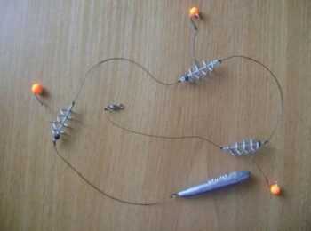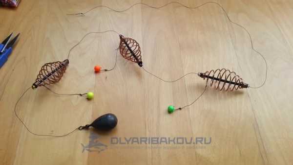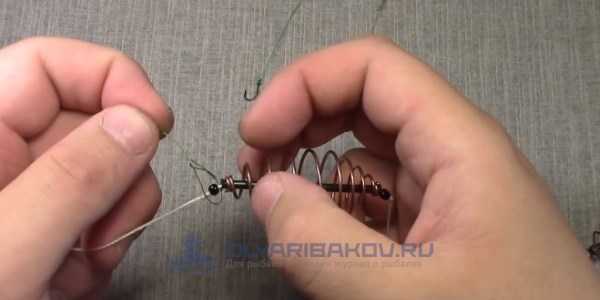 ΠΠΎΡΠ»Π΅ ΡΠ±ΠΎΡΠΊΠΈ ΡΠ½Π°ΡΡΠΈ ΠΈ ΠΌΠΎΠ½ΡΠ°ΠΆΠ° Π½Π° ΠΎΡΠ½ΠΎΠ²Π½ΡΡ Π»Π΅ΡΠΊΡ, ΠΏΡΠΈΠΊΠΎΡΠΌΠΊΠ° Π·Π°Π±ΠΈΠ²Π°Π΅ΡΡΡ Π² ΠΏΡΡΠΆΠΈΠ½Ρ, Π° Π½Π° ΠΊΡΡΡΠΊΠΈ Π½Π°ΡΠ°ΠΆΠΈΠ²Π°ΡΡΡΡ ΠΏΠ΅Π½ΠΎΠΏΠ»Π°ΡΡΠΎΠ²ΡΠ΅ ΡΠ°ΡΠΈΠΊΠΈ ΠΈΠ»ΠΈ Π΄ΡΡΠ³Π°Ρ Π½Π°ΡΠ°Π΄ΠΊΠ°. ΠΡΠΈ Π»ΠΎΠ²Π»Π΅ Π½Π° ΡΠ΅ΠΊΠ΅ ΡΠ΅ΠΊΠΎΠΌΠ΅Π½Π΄ΡΠ΅ΡΡΡ Π·Π°Π±ΡΠ°ΡΡΠ²Π°ΡΡ ΠΎΡΠ½Π°ΡΡΠΊΡ ΠΏΠΎ Π΄ΠΈΠ°Π³ΠΎΠ½Π°Π»ΠΈ Π² ΡΡΠΎΡΠΎΠ½Ρ Π½Π°ΠΏΡΠ°Π²Π»Π΅Π½ΠΈΡ ΡΠ΅ΡΠ΅Π½ΠΈΡ, ΡΠΎΠ³Π΄Π° Π΅Π΅ Π½Π΅ Π±ΡΠ΄Π΅Ρ ΡΠ½ΠΎΡΠΈΡΡ ΠΏΠΎΡΠΎΠΊΠΎΠΌ Π²ΠΎΠ΄Ρ.