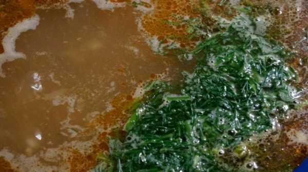Прежде чем снять уху из хвоста горбуши, стоит добавить свежую зелень, для аппетитного вида и аромата.