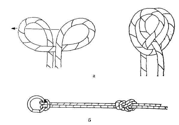 Рис. 42. Вспомогательные узлы: а – стремя; б – якорная петля