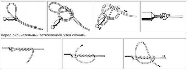 Переходим к рассмотрению того, каким способом правильно привязать вертлюжок в зависимости от материала лески: