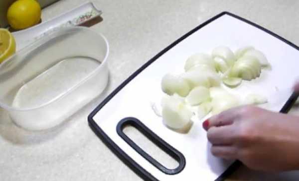 2. Для того чтобы сделать маринад, в котором в дальнейшем будет солиться рыба, нам необходимо почистить репчатый лук, а затем поместить его