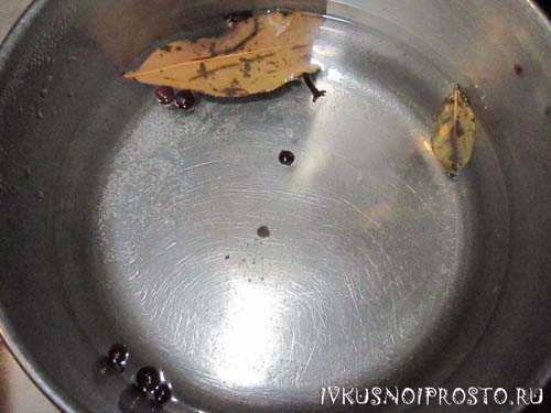 - Лавровый лист, перец горошек – по вкусу.
