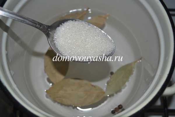 - В кастрюльке вскипятить воду, добавить соль, сахар и специи, прокипятить рассол 5 минут.