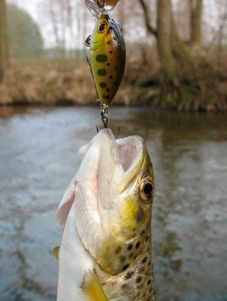 - Обычно утром, вечером и в пасмурную погоду рыбу больше привлекают светлые и блестящие серебристые воблеры. А вот на солнце такие приманки сияют неестественно ярко, поэтому лучше поставить более тусклые цвета – золотистый, бронзовый и т.п. Перламутровый вариант с красными и синими пятнышками «под форельку» позволяет удачно ловить при любой освещенности.