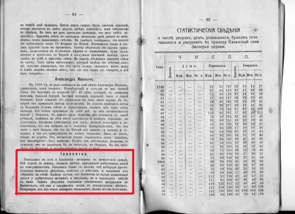 Огромнейшая благодарность соавтору ДИМИТРИЮ из САНКТ-ПЕТЕРБУРГА, любезно отсканировавшему и приславшему сканы этой уникальной драгоценнейшей старинной книги о селе ЗАОЗЕРЬЕ (автор — Священник Храма села ЗАОЗЕРЬЕ — МИХАИЛ МИРОЛЮБОВ, цензор — Протоиерей ИОАНН МАНСВЕТОВ, растрелянный в 30-е годы настоятель Храма села КОНДАКОВО http://kondakovo.narod.ru ): |