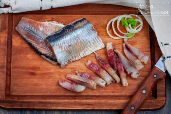 - Теперь надо нарезать селедку кусочками или снять с нее филе и наслаждаться.
