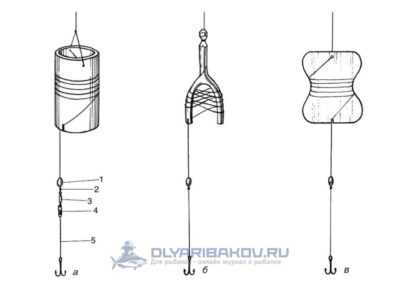 - на свободном конце лески делаются несколько петель, к которым крепятся крючки с грузилом.