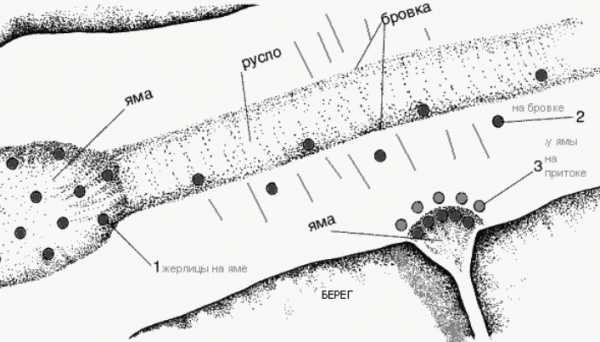 Места для установки жерлиц выбирают под обрывистыми берегами, на перекатах, у кромки травы или камыша, возле затопленных коряг, на выходах из подводных ям, в местах, где есть резкие перепады глубин.