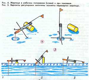 - основание жерлицы замедляет замерзание поверхности воды в лунке – леска сматывается и разматывается свободно.