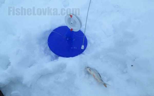 А принцип работы заключается вот в чем. На снасть цепляем живца, опускаем его в лунку и закрепляем флажок. Когда рыба хватает наживку катушка прокручивается, флажок от этого поднимается в стоячие положение. Это и есть сигнал к тому что щука на крючке и теперь остается во время сделать подсечку.
