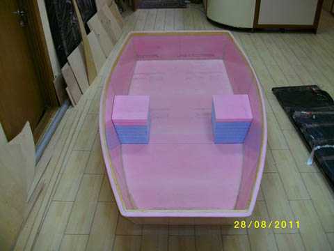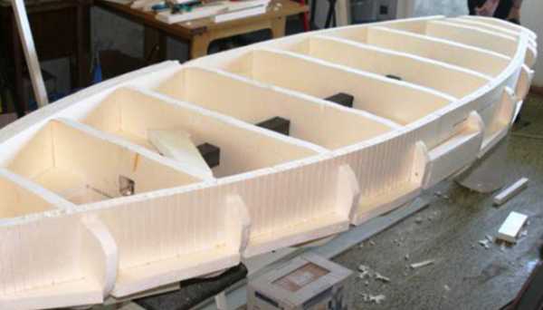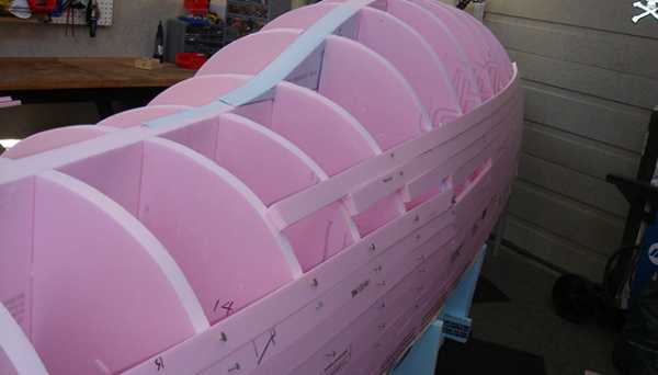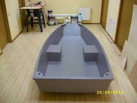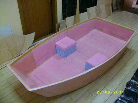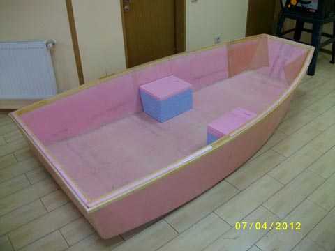 Совет! Если есть необходимость соорудить лодку большей длины, то для придания дополнительной жесткости потребуется фанера с толщиной в 10 мм. Именно из нее формируется каркас, который впоследствии обшивается пенопластом и покрывается стеклотканью. На такой каркас проще установить держатели весел и скамейки для сидения.