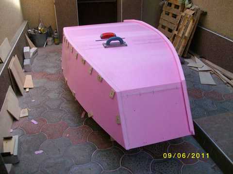- Окончательный этап – это поклейка стеклоткани на всю поверхность плавсредства. При этом, нужно следить за качеством поклейки стеклоткани. После того, как эпоксидная смола застынет, постройку желательно зашлифовать, после чего покрасить в любой цвет.