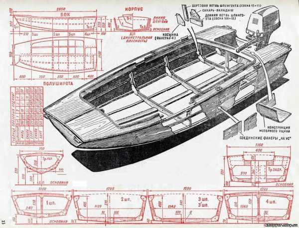 Рабочие чертежи, которые необходимы для строительства лодки. Их можно найти в Интернете и скачать, а потом перерисовать в масштабе 1:1, что сильно упростит процесс строительства. Достаточно будет перенести рисунок на фанеру и вырезать заготовки электрическим лобзиком.