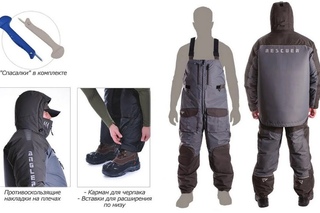 Костюмы-поплавки для зимней рыбалки были разработаны для того, чтобы обеспечить безопасность на льду. Если рыболов в таком поплавке проваливается в воду, костюм не дает ему утонуть и переворачивает его лицом вверх.