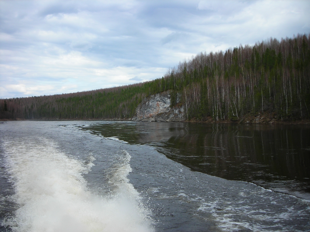 То с одного берега, то с другого на месте изгиба реки встречаются песчаные пляжи, по которым, идя обратно, мы тащили лодку вверх по течению: