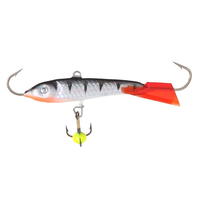 Наиболее популярной снастью для зимней рыбалки на окуня является балансир. Представляет он из себя рыбку, у которой есть крючки на голове и хвосте, а так же тройник на брюхе. За счет хвоста она осуществляет игру в горизонтальной плоскости. Цветовая гамма обширная и понять, на какой именно балансир будет клевать окунь лучше, поможет только практика.
