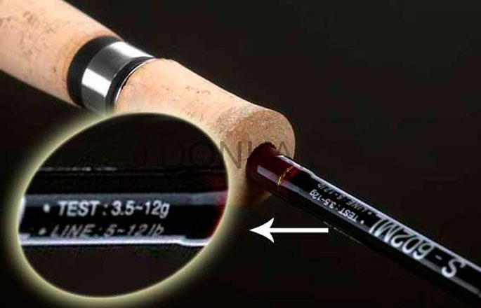 Тестовые характеристики удилища считаются основными. Он указывается в граммах, которые наносятся на тело удилища и определяет верхний и нижний предел массы используемой приманки. Существует несколько основных классов. Например: