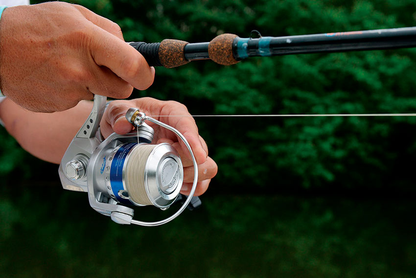Наматывать леску надо с небольшим натяжением, чтобы она ложилась на шпулю плотно и не «вспухала». Для этого оттяните леску к рукоятке удилища и слегка прижмите указательным пальцем правой руки, а левой вращайте рукоятку.