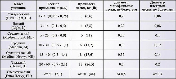 Класс удилища: подбирается по размерам желаемой добычи и весу приманок.