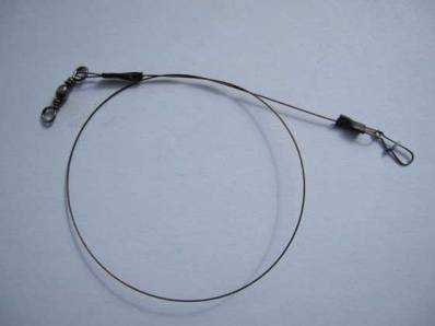 Такие поводки хоть и отличаются своей меньшей маскировкой, однако, являются самой надёжной защитой приманки от зуб хищника. Можно не переживать, что щука оборвёт леску зубами.