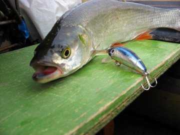 Как только место ловли выбрано, следует дождаться момента нападения рыбы на малька и в ту же секунду подбросить хищнику воблер. Игра осуществляется вниз по течению небольшими рывками. Ни в коем случае не стоит спешить с подсечкой.