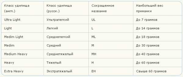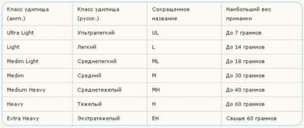 Тест спиннинга указывается в граммах и свидетельствует о том, приманки какого вида предпочтительнее применять на данном удилище. На наших водоемах можно использовать удилища 3-х категорий, согласно классификации: