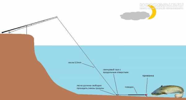 Оснастка на налима или сома подразумевает под собой использование концевого грузила.
