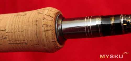Рукоять из пробки. Но пробка одевалась странным способом — не насаживалась на бланк, а натягивалась на него в разрезанном виде, а потом склеевалась и обрабатывалась. В результате виден шов склейки: