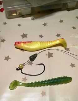 - На финальном этапе насаживаем на крючок приманку, роль которой играют чаще всего активные силиконки, особенно виброхвосты и твистеры.